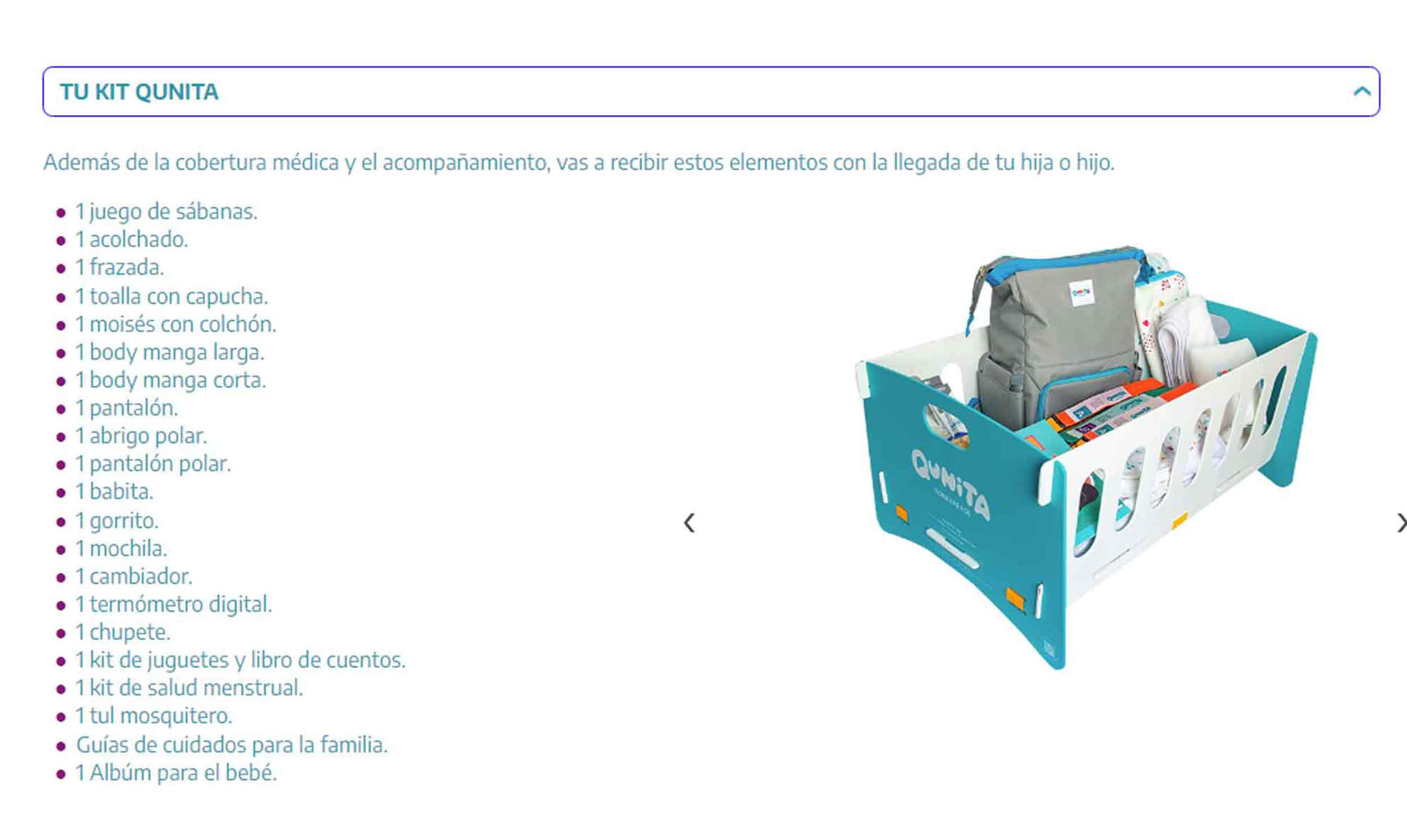 • Elementos del kit Qunita para el cuidado y la crianza.