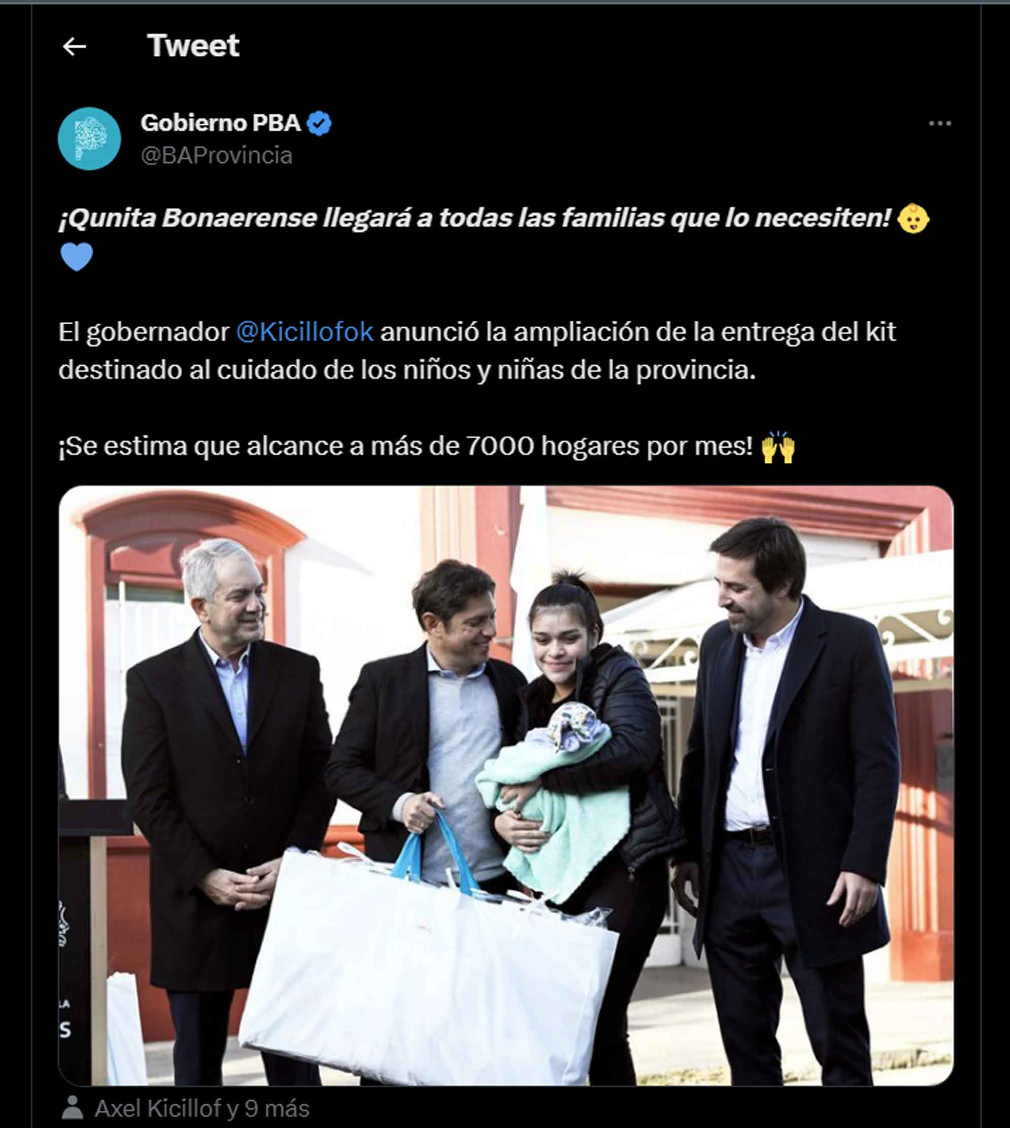El gobernador de la provincia de Buenos Aires, Axel Kicillof, junto al ministro de Salud bonaerense, Nicolás Kreplak, presentaron en el Hospital Ricardo Gutiérrez de La Plata la universalización del Programa Qunita Bonaerense, lo que significa que el kit llegará a todos los bebés nacidos en el territorio provincial, sin distinción de peso.