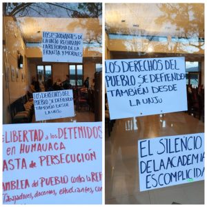 “Estábamos en una sesión del Concejo Superior de la Universidad junto con docentes de ADINJu y alumnos de la universidad presentando un anteproyecto para declarar un órgano en repudio de la constitución y que se presenten como querellantes en las causas contra docentes y alumnos de la UNJu y que se expidan sobre toda la situación en la provincia.