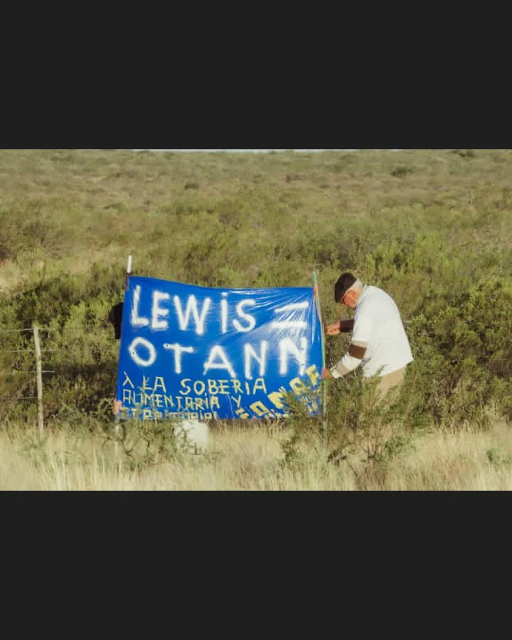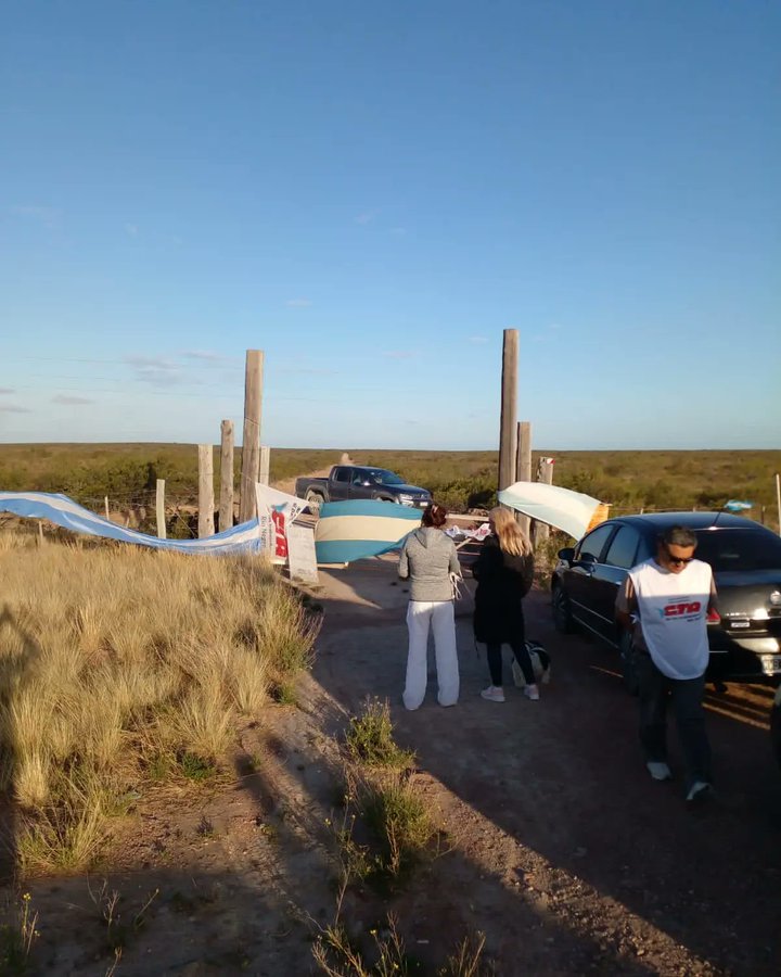 Los manifestantes realizaron el acto y desplegaron banderas argentinas, cuando apareció una camioneta, cuyos ocupantes se identificaron como de seguridad del campo y dijeron que se tenían que retirar.