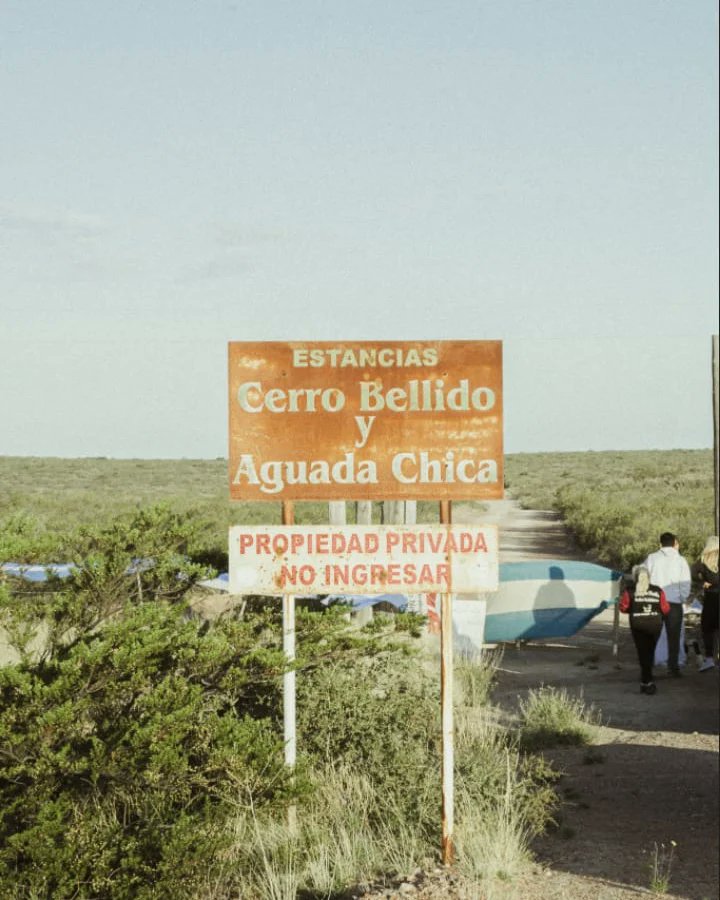 El acceso tenía dos candados y un cartel: Estancias Cerro Bellido y Aguada Chica – Propiedad privada.