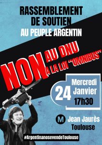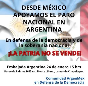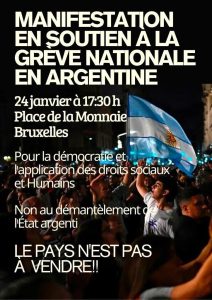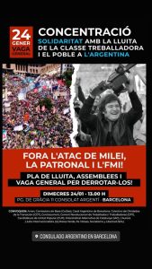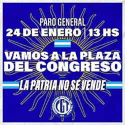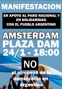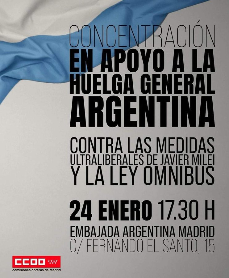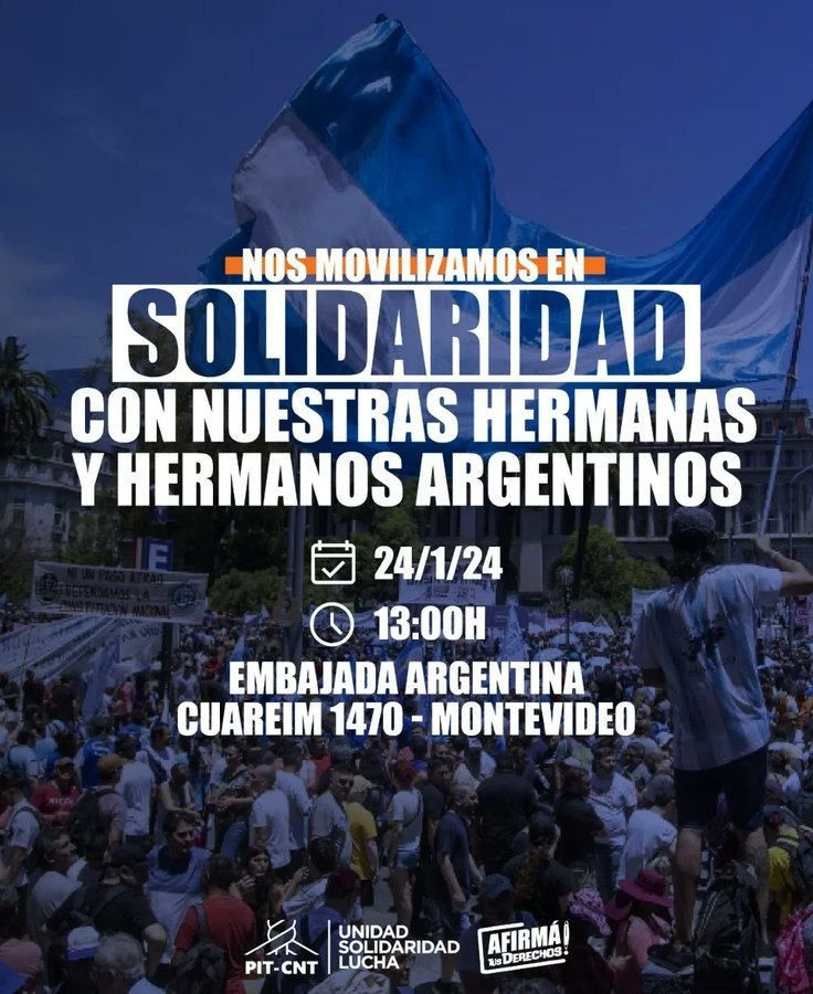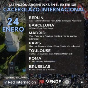 Rositto confirmó que el 24 de enero se realizarán actos de solidaridad con el movimiento obrero argentino y su lucha en París, Madrid, Valencia, Barcelona, Amsterdam, Bruselas, Ginebra, Roma, Berlín, Montevideo y Bogotá, entre otras ciudades, y que también ese día se presentará “una carta ante las embajadas argentinas en todo el mundo”.